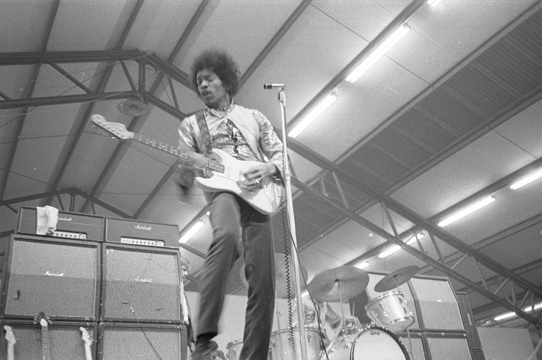 Een optreden van Jimi Hendrix op de Hippy Happy beurs voor jongeren in Ahoy’, 1967