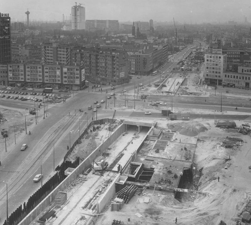 Bouw van de verkeerstunnel onder het Churchillplein, 1969