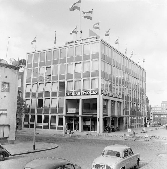 Kantoren van de dagbladen Trouw en De Rotterdammer aan de Witte de Withstraat, 1957