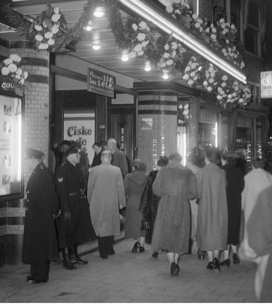 Mensen staan in de rij voor de film Ciske de Rat in het Colosseum Theater aan de Beijerlandselaan, 6 oktober 1955.