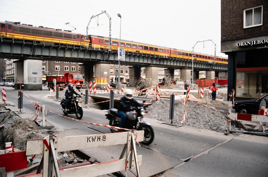 De Meent bij de Binnenrotte, 5 april 1988. Alles ligt open in verband met de bouw van de Willemsspoortunnel.