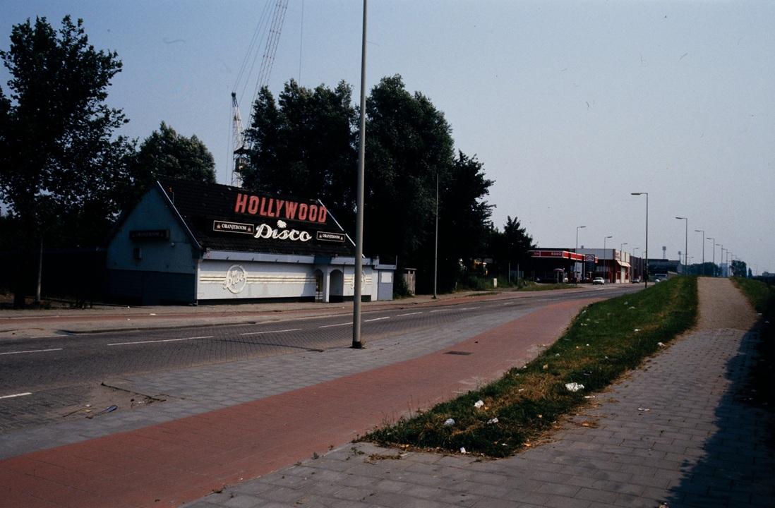 Discotheek Hollywood aan de Korte Stadionweg vlak voor de Oranjeboomstraat, 1987