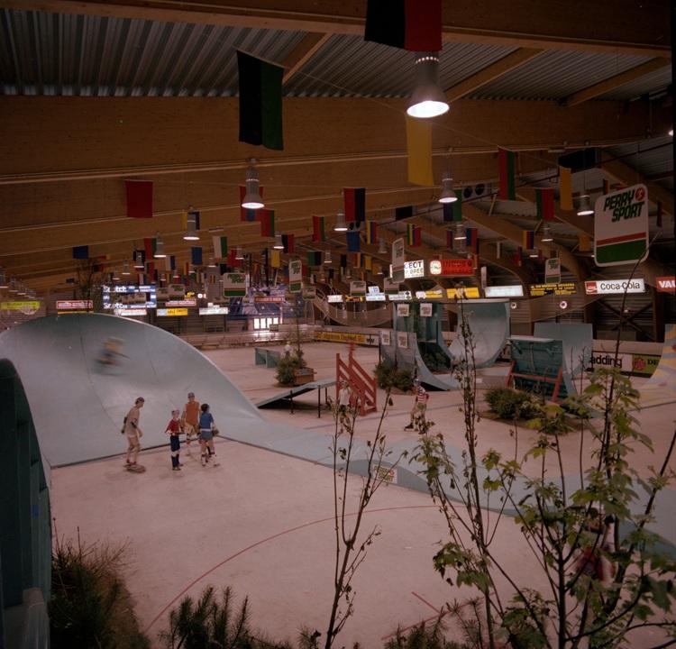 Kinderen spelen op een skatebaan tijdens Jeugdland in Ahoy’, 1976
