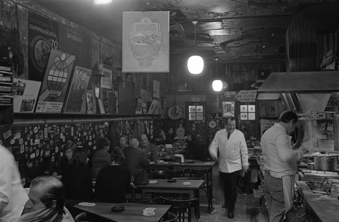 Het interieur van het café-restaurant Bierhandel De Pijp in de Gaffelstraat, 1974