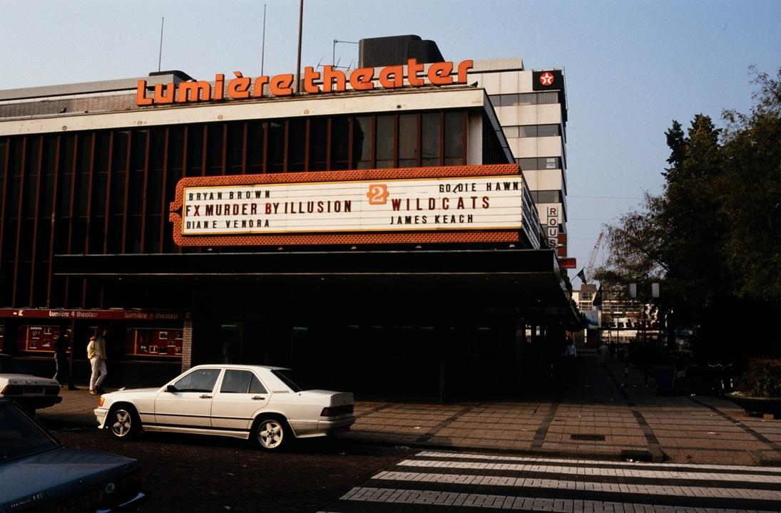 Het Lumière Theater op de Kruiskade met rechts de Lijnbaan, 1986