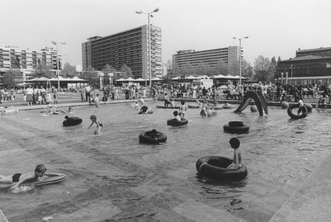 De westzijde van het Schouwburgplein is tussen 1980 en 1985 gevuld door het ‘Woondok’, een wooncomplex met winkels en kantoren op straatniveau. In 1987 is de noodschouwburg afgebroken om plaats te maken voor een nieuwe. In 1996 is het plein geheel nieuw ingericht naar ontwerp van Adriaan Geuze. Het plein werd iets verhoogd en is volgens de architect een stadspodium. Op het plein werd dat jaar ook de bioscoop geopend.