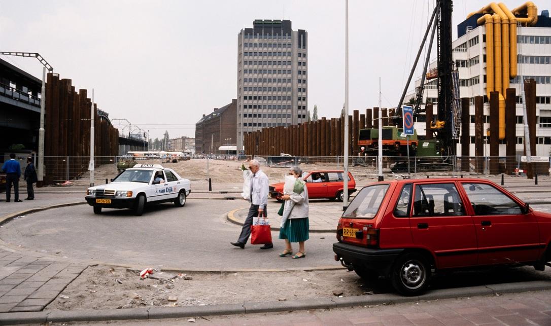 De Binnenrotte gezien vanaf de Blaak met werkzaamheden voor de aanleg van de Willemsspoortunnel, 30 april 1988.
