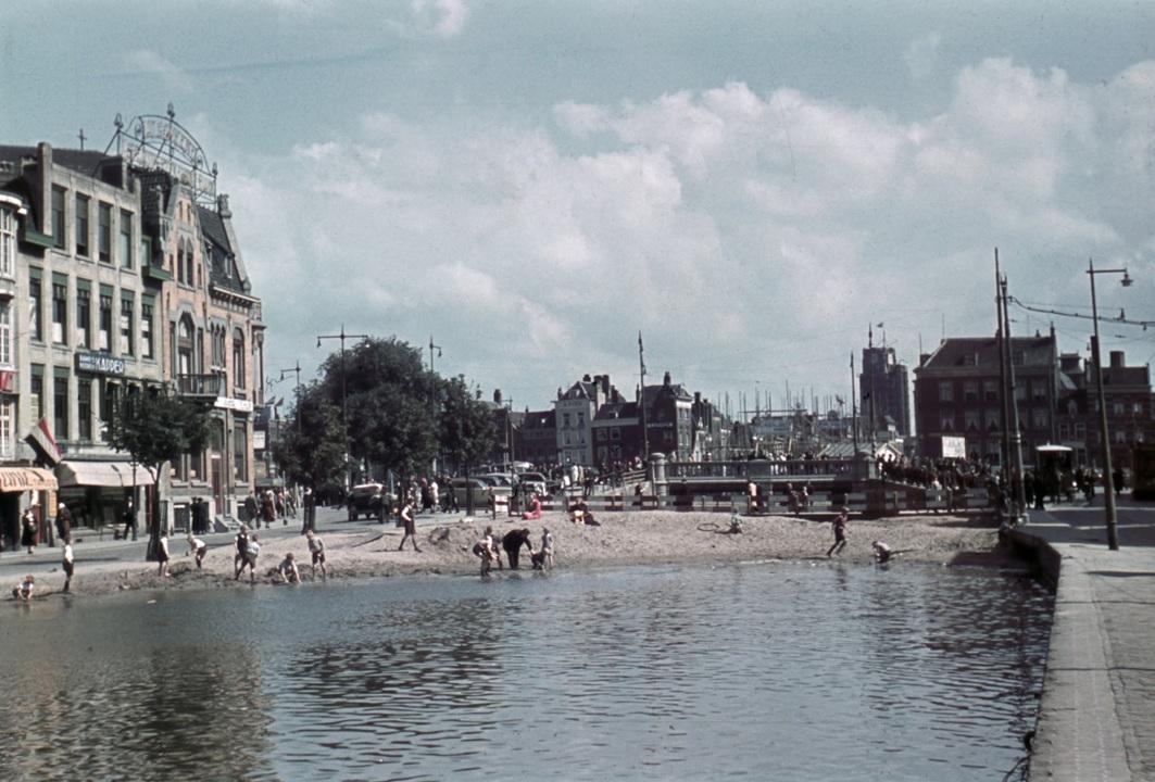 Het dempen van de Schie bij de Schiebrug en het Hofplein, 1939
