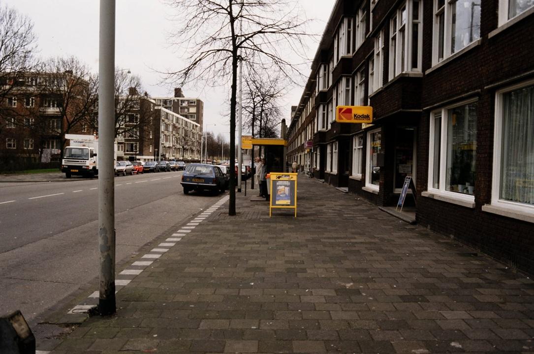 Een bushalte aan de Franselaan ter hoogte van de Italiaansestraat, 1988
