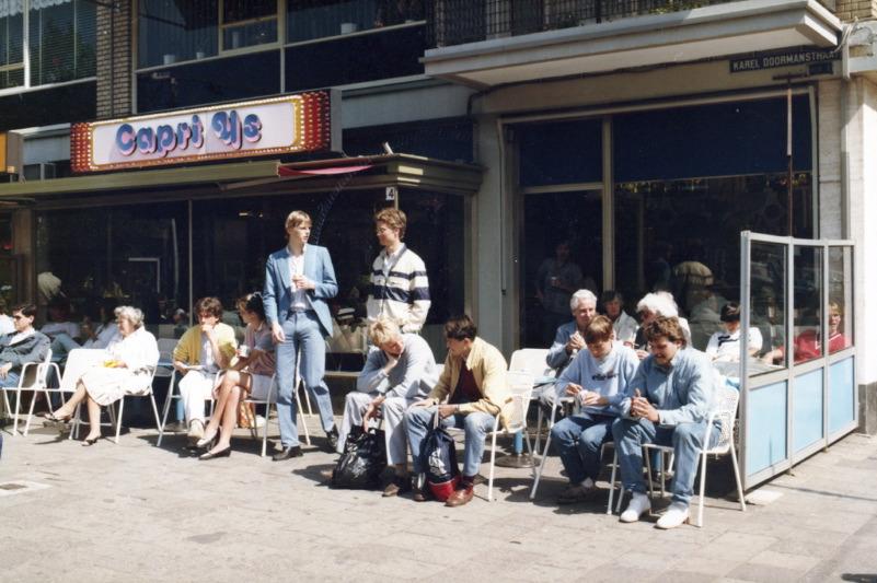 Een ijsje halen bij Capri op de Karel Doormanstraat, 1984