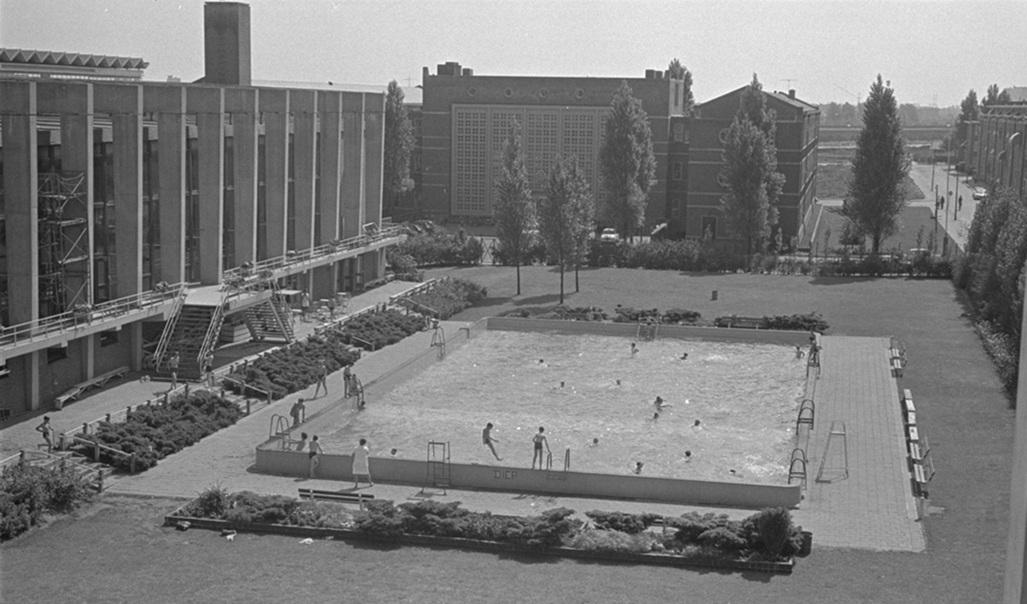 Het buitenbad van het Sportfondsenbad Zuid aan de Gooilandsingel, 1967