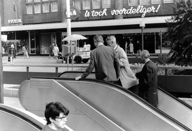 De Coolsingel ter hoogte van de metro-ingang Beurs, 1969. Op de achtergrond de C&A