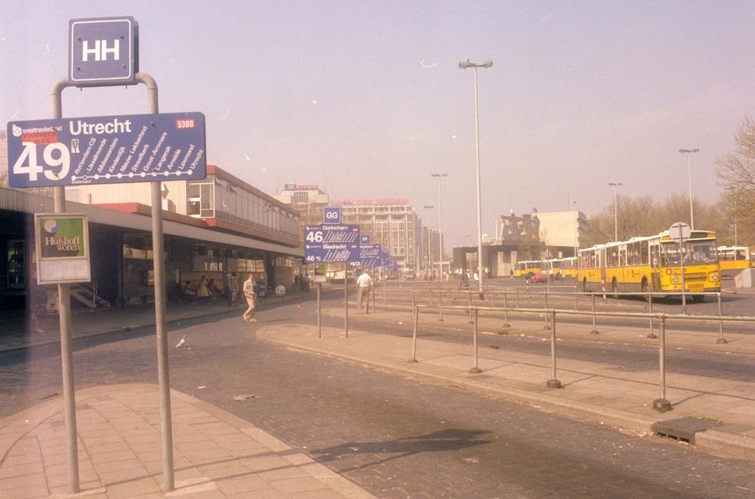 Het Delftseplein met het busstation voor streekbussen, 1981