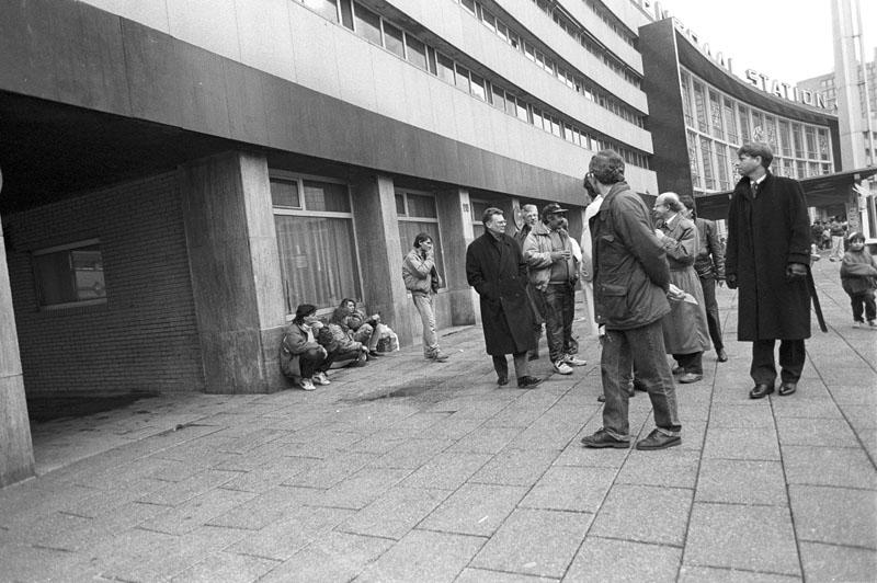 Staatssecretaris Aad Kosto bezoekt Perron Nul bij het Centraal Station, 2 maart 1991.