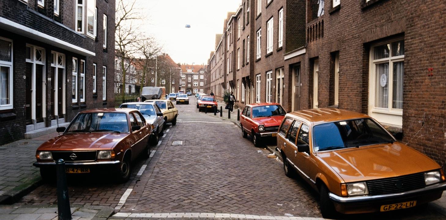 Zicht op de 2e Reserveboezemstraat vanaf de 1e Wandeloorddwarsstraat, 1988
