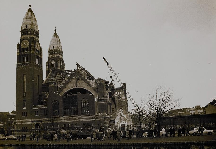 De sloop van de Koninginnekerk gezien vanaf de Sophiakade, 1972
