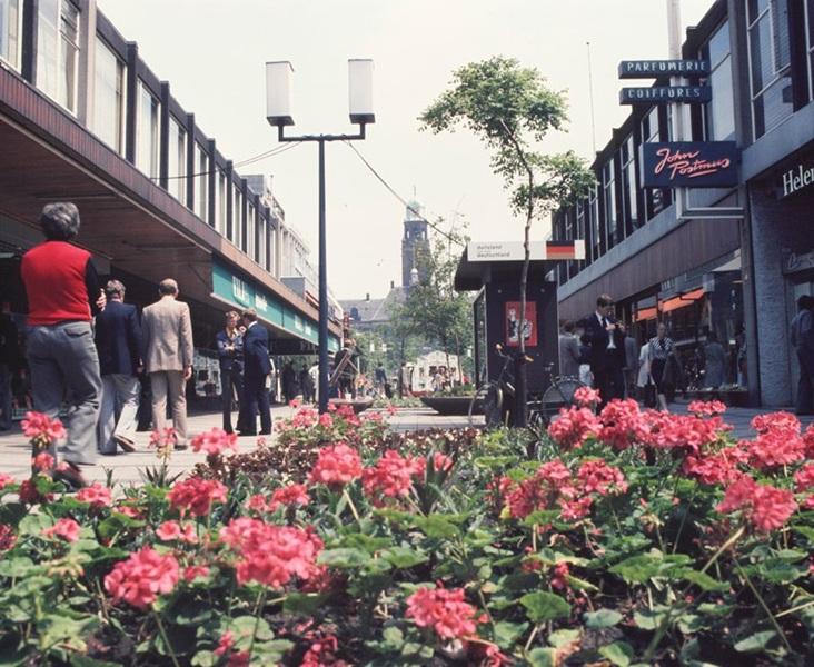De Korte Lijnbaan met op de achtergrond het stadhuis, 1975