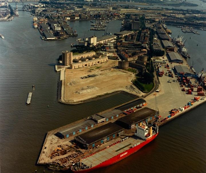 Katendrecht met op de voorgrond firma Hanno, 1987