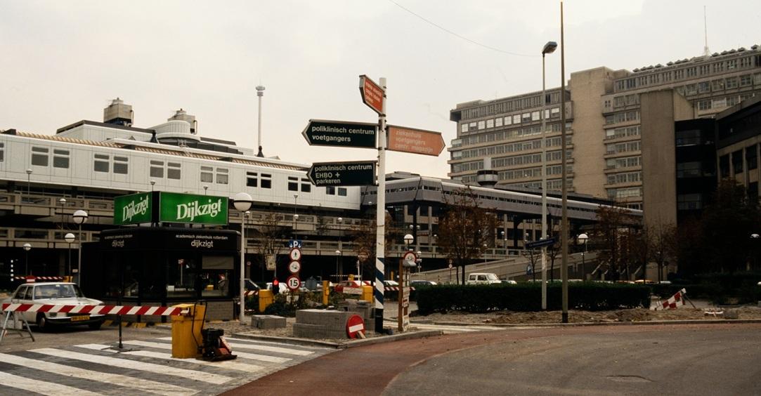 De ingang van het Academisch Ziekenhuis Dijkzigt aan het Dr. Molewaterplein, 1987