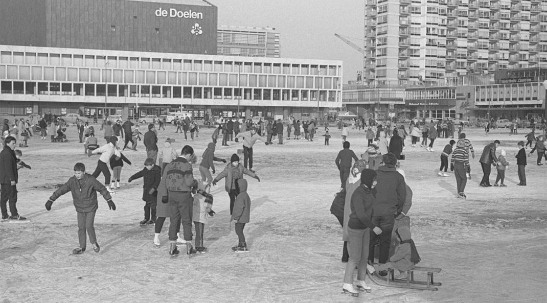 Schaatsen op het Schouwburgplein, 1967