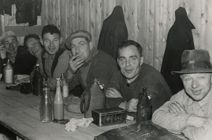 Schafttijd voor bouwvakkers van de Maastunnel, 1938