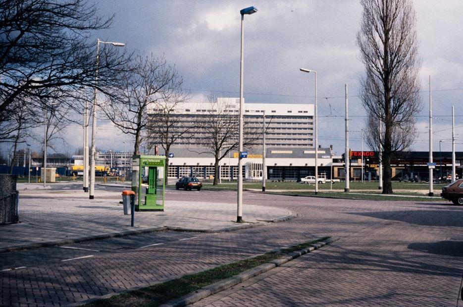 De Texaco en de Klok liggen aan de Colosseumweg. Op de achtergrond het Sint Clara ziekenhuis.