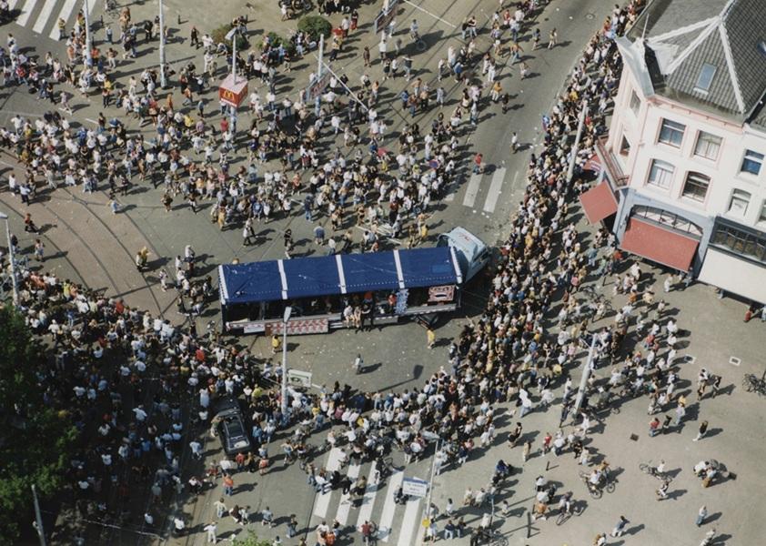 Het Eendrachtsplein tijdens de Fast Forward Dance Parade, 1997