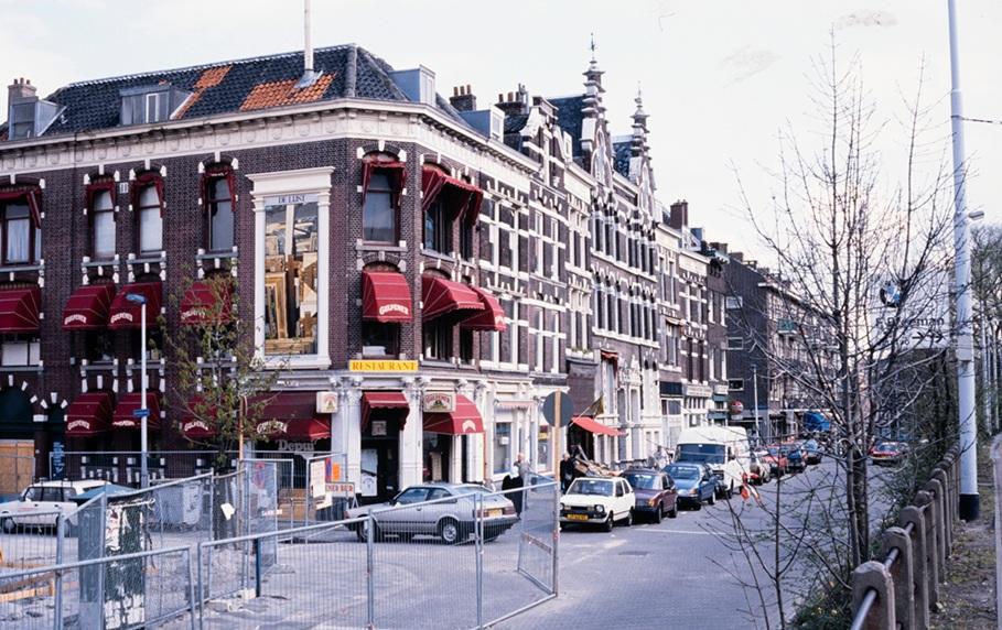 De Oostzeedijk Beneden met op de hoek van het Oosteinde café De Pui, 1990