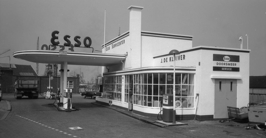 Het Esso tankstation van J. de Kluiver aan de Brielselaan 55, 1963