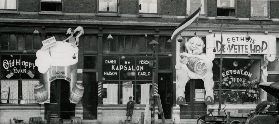 De aardige versiering op Katendrecht, speciaal aan de Veerlaan en Delistraat, heeft reeds duizenden kijkers getrokken. Gisteravond is er een voetbalwedstrijd tussen Pretoria en Belvedere gespeeld, welke door laatstgenoemde club werd gewonnen. Vanavond om 7 uur wordt er een hardloopwedstrijd de ronde van Katendrecht gehouden, terwijl om acht uur de bekende Chinese drakendansers op het voetbalterrein aan de Tolhuislaan een demonstratie zullen geven. Deze zal Vrijdagavond om 9 uur of half tien herhaald worden. Zondag wordt voor amateur-wielrijders de ronde van Katendrecht verreden. Reeds meer dan 120 renners, waaronder vele bekende figuren, hebben voor deze wedstrijd ingeschreven. De start is om een uur van het Deliplein.